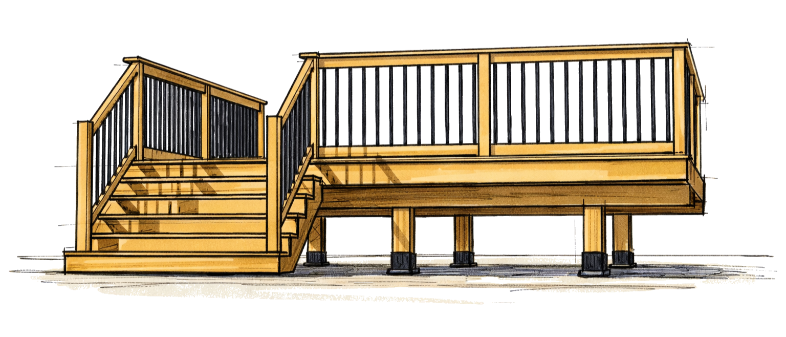 Magnolia Studios creates pre-designed architectural deck plans for residential projects. Each plan is carefully drafted to provide clear proportions, practical construction guidance, and drawings suitable for permit submission.