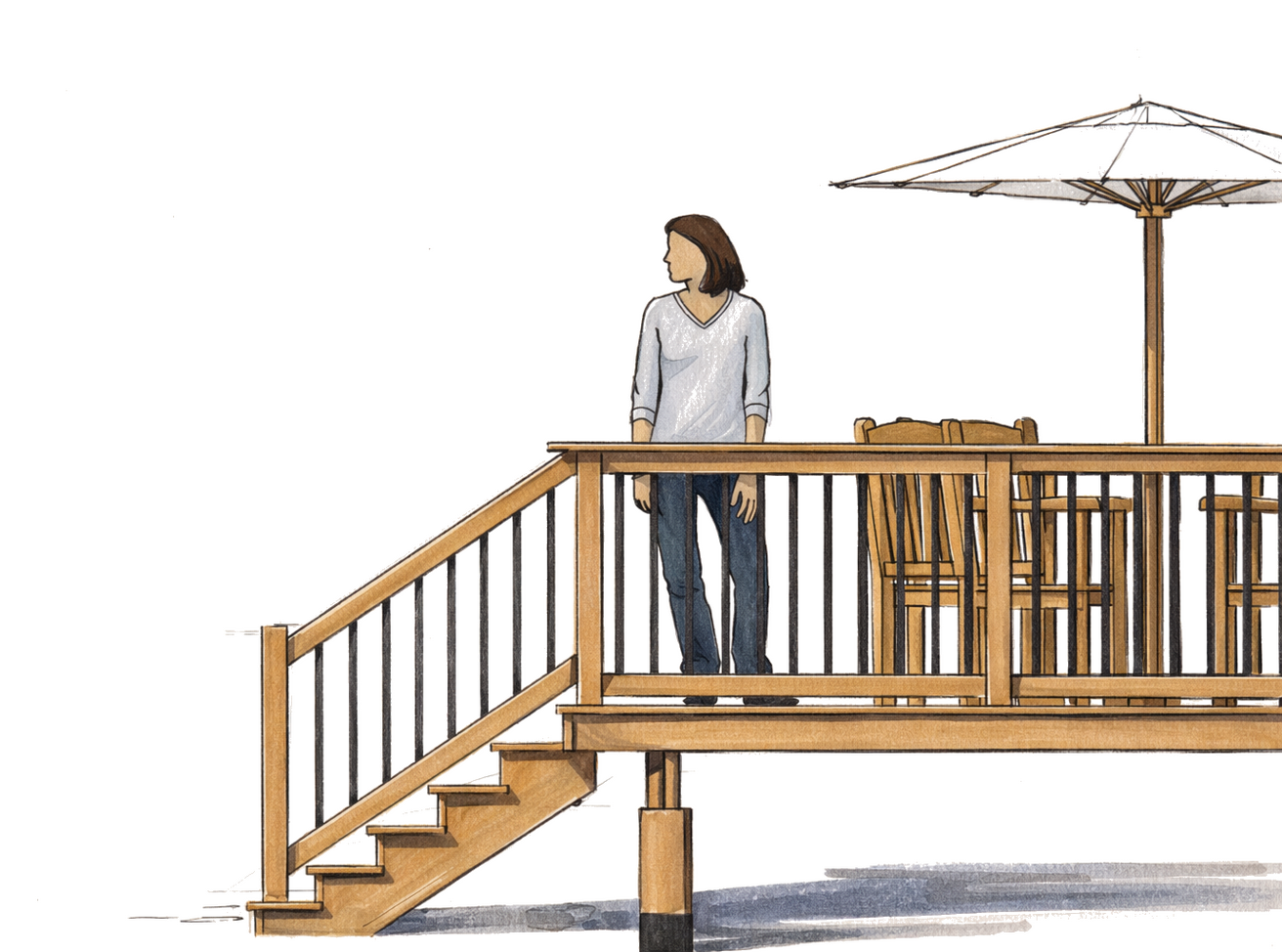 | Railing | Wood posts with metal balusters |